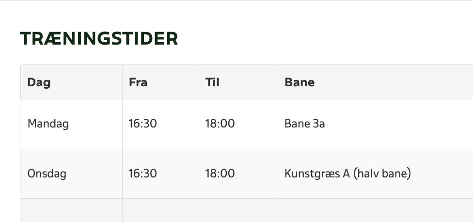 Træningstider
