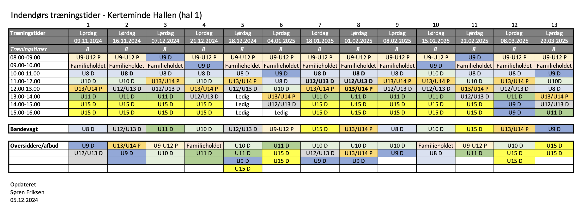 Indendørs træning - Kerteminde Hallen (hal 1) 2024/25